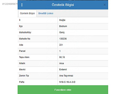 | Taşınmaz Numarası | |