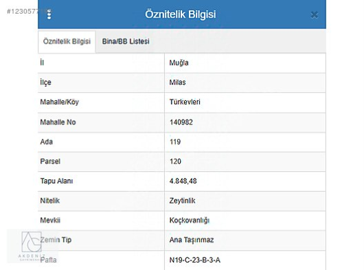 | Taşınmaz Numarası | |