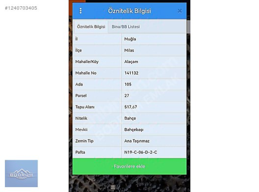 | Taşınmaz Numarası | |