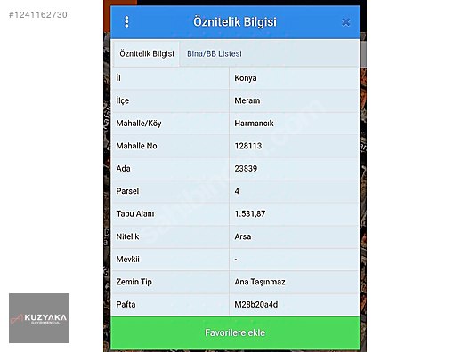 | Taşınmaz Numarası | |