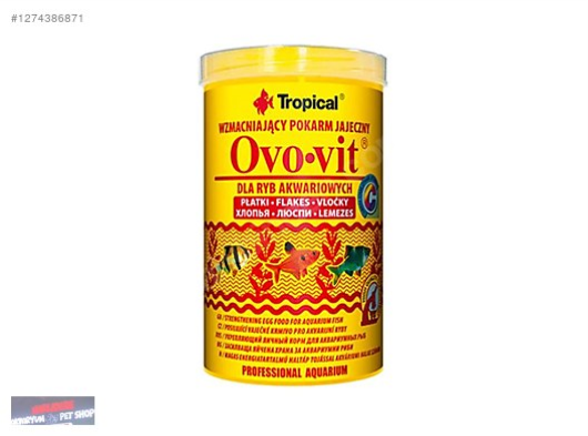 Tropical Ovo-vit, yumurta gevreği ile güçlendirilmiş yüksek protein içeriğine sahip pul balık yemi. Değerli protein, doymamış yağ asitleri ve yumurta sarısından kolayca asimile edilebilir lesitin sağlayan ek bir besindir.Tropical Ovo-vit, kompozisyonu büyümeyi olgunlaşmayı ve yumurtlamayı teşvik eder. Bu nedenle özellikle beslenme ihtiyacı yüksek olan yavru ve genç balıklar için tavsiye edilir. Dikkat çeken bir başka bileşen, balıkların hastalıklara karşı direncini artıran, yaraların ve sıyrıkların iyileşmesini hızlandıran ve genç balıklarda iskelet deformasyonlarını önleyen stabilize bir C vitamini.