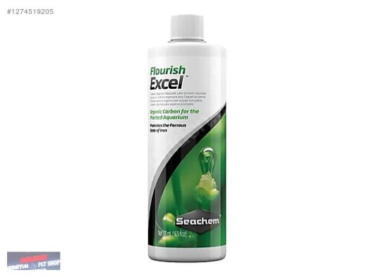 fakat aynı zamanda (örneğin, fotosentetik ara maddeler) gibi organik bileşiklerden türetilebilir. CO 2 enjeksiyonunun veya Flourish Excel™ aynı zaman zarfında kullanımının bir sakıncası yoktur. Fotosentetik ara ürünlerin üretilmesi ve bunların üzerine inşa edilmesi işlemleri eşzamanlı olarak gerçekleştiği için, Flourish Excel ™ 'in tek başına ya da CO 2 ile birlikte kullanılmasıyla önemli bir fayda elde edilebilir . Flourish Excel™ 'in fotosentezin karbon zinciri oluşturma sürecinde kullanılabileceği olası bir gerçektir. Talimatlar İlk kullanımda veya büyük bir (>% 40) su değişiminden sonra, her 40 Litre için 1 kapak (5 mL) kullanın. Daha sonrasında ise, her 200 Litre için günlük veya her gün 1 kapak kullanın. Daha küçük dozlar için lütfen her başlık içinde bulunan yiv arası mesafenin yaklaşık 1 mL olduğunu hatırlatırız. DİKKAT: İçilmez ve yutulmaz, gözlerinize temas ettirmekten kaçınınız. Göz ile temas olması durumunda derhal gözlerinizi su ile yıkayınız ve tıbbi yardım alınız.