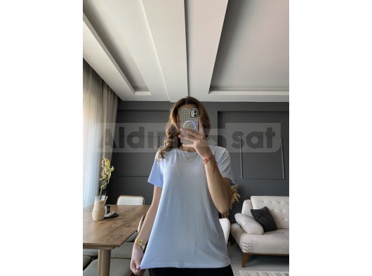 Açık mavi basic t-shirt