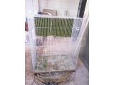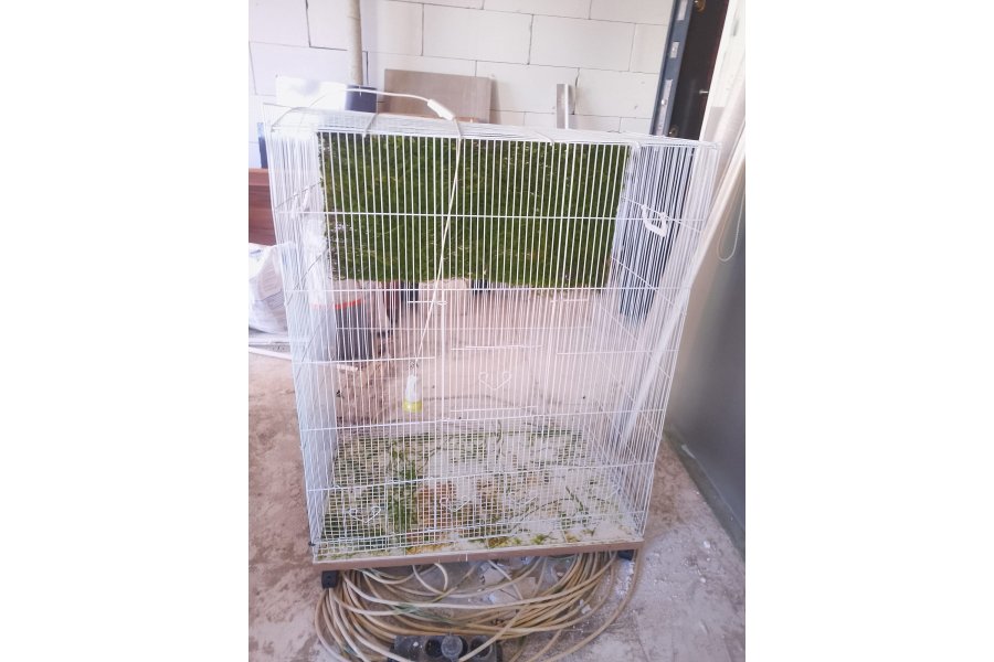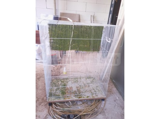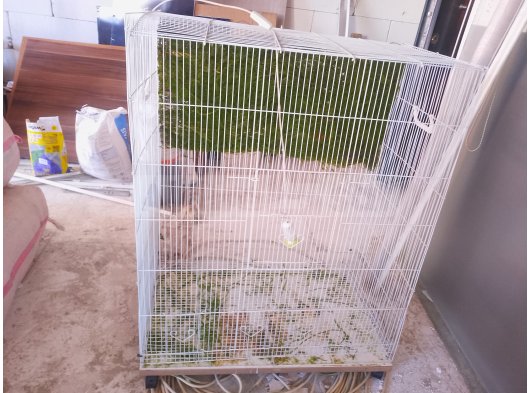 El yapımı, geniş ve sağlam ahşap kuş kafesi (voliyer) satılıktır. Doğal dallarla donatılmıştır, kuşların tırmanması ve rahat hareket etmesi için uygundur. Tel örgü yapısı sayesinde hem güvenli hem de hava sirkülasyonu iyidir.