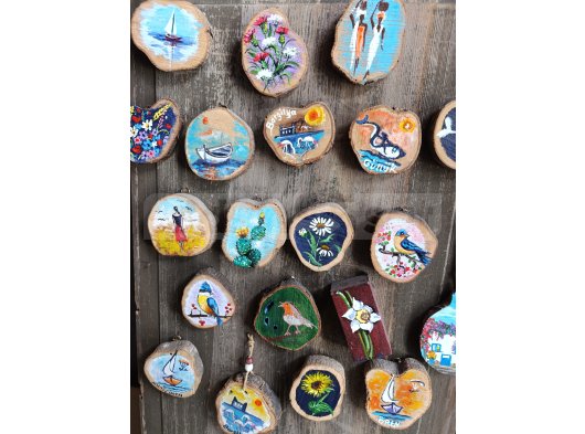 ✔ Özgün Sanat Eserleri: Yağlı boya, akrilik ve suluboya teknikleriyle hazırlanan, yöresel figürleri yansıtan el yapımı tablolar.