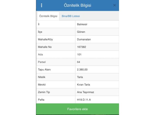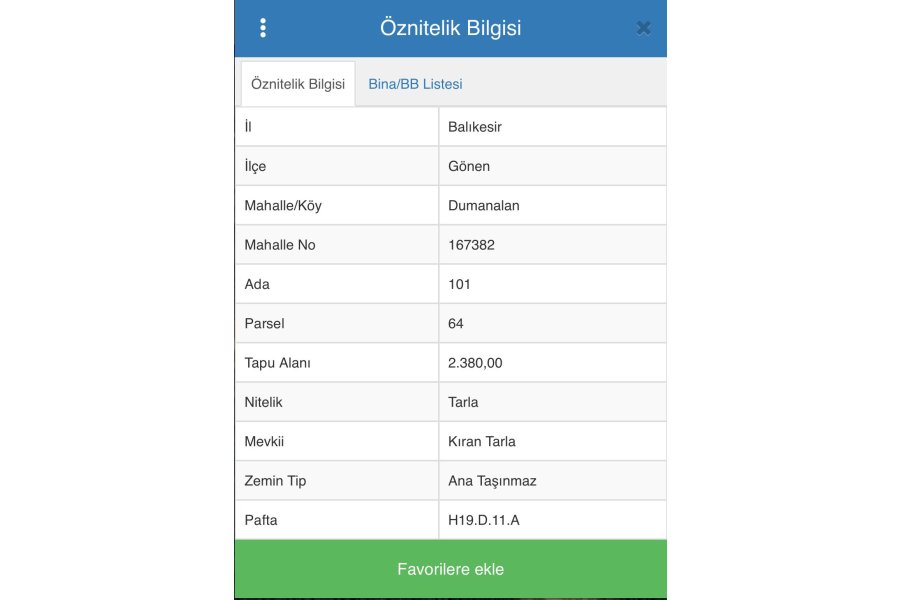 | Taşınmaz Numarası | |