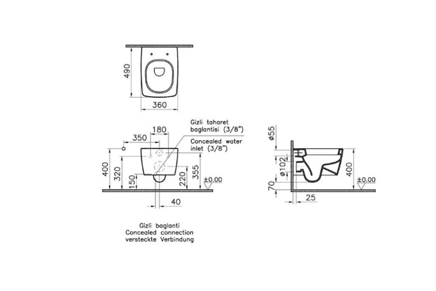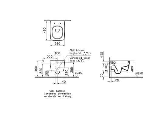 Metropole Asma Klozet Gizli Montajlı, Kompakt, 49 cm Ürün Kodu: 5671B003-0559